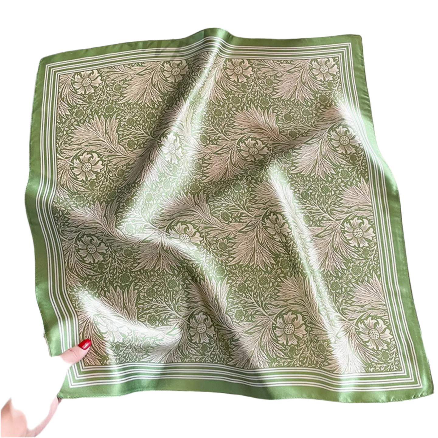 Green Floral Silk Scarf